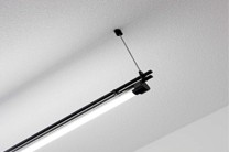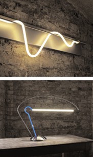 | Een verlichtingssysteem in haar ‘volle naaktheid’, dat bestaat uit enkel een dragende buis van glasvezel met een doorsnede van slechts 10mm. Hierin is de bedrading opgenomen en de techniek verbonden. Door de diverse verbindingselementen kunnen er prachtige lichtlijnen of grote ornamenten voor representatieve ruimtes worden gecreëerd. De standaard afwerking van alle onderdelen is zwart en het systeem kan op iedere gewenste hoogte worden afgehangen. |