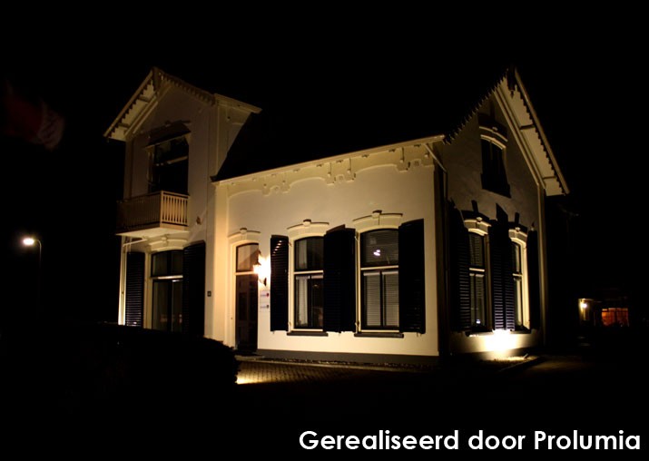 Reclamebureau Youniq in Holten wilde haar statige pand graag uitgelicht hebben met een mooie warme lichtkleur. Met de LED floodlight van Prolumia is dit uitermate goed gelukt. Het egale licht wat dit armatuur uitstraalt geeft het pand nog meer klasse.