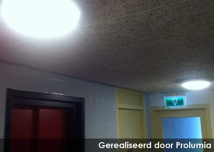 Ter vervanging van de conventionele TL-armaturen, heeft de VVE gekozen voor de Prolumia LED Prodisc om de plafonds in de centrale hal en op de verdiepingen duurzaam te verlichten.